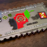 They asked us to design and build a custom commemorative challenge coin for their participation in Operation Freedom’s Sentinel 2018-2019. They wanted the coin shaped like a rectangle postage stamp, with perforation holes on each side.