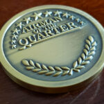 We had the opportunity to design and manufacture a custom challenge coin for the Airman of the Quarter award. It was a simple and elegant design, with only a lettering of the name of the award on one side, and the embossed and painted insignia on the other.