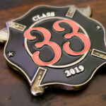 We had the opportunity to design and produce the custom challenge coin for the Class of 33. The design used for the coin was simple, and bold, but a bit different than common fire department challenge coins. While still using the common fire department symbol such as the Maltese Cross as the base shape of the coin, they wanted some unique details like the engraved crossed axes and skull to be applied to the design.