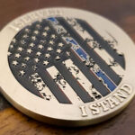 They wanted something clean and raw, no unnecessary gimmicks and ornaments. We put the image of the Texas map with the Marine Corps emblem on top of it, on one side of the coin. On the other side, a minimalistic grungy image of the star spangled banner, only painted with blue & black. Both sides have unpainted inscriptions enclosing the graphics in the middle. And what we get is a charming straightforward custom challenge coin.