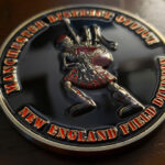The DEA New England Division gave us an order to build them a custom challenge coin for their Manchester District Office. The design concept that they had was a more modern-looking challenge coin with a picture of a skeleton playing a bagpipe on one side, and an image of a Bigfoot or Sasquatch on the other side.