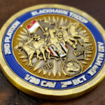 This custom challenge coin is commissioned to us and we had fun designing and producing it. The basic concept of the design is pretty simple, but we had to make sure that the sculpted cavalry unit on the front side of the coin machined pristinely. The names of the soldiers had to fit on the back side, and also the small sized emblems and ornaments had to be engraved with precision. The result is a really delicate and stunning challenge coin.